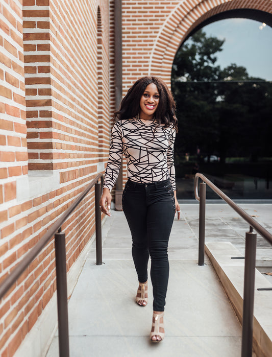 Abstract Print Long Sleeved Mesh Bodysuit